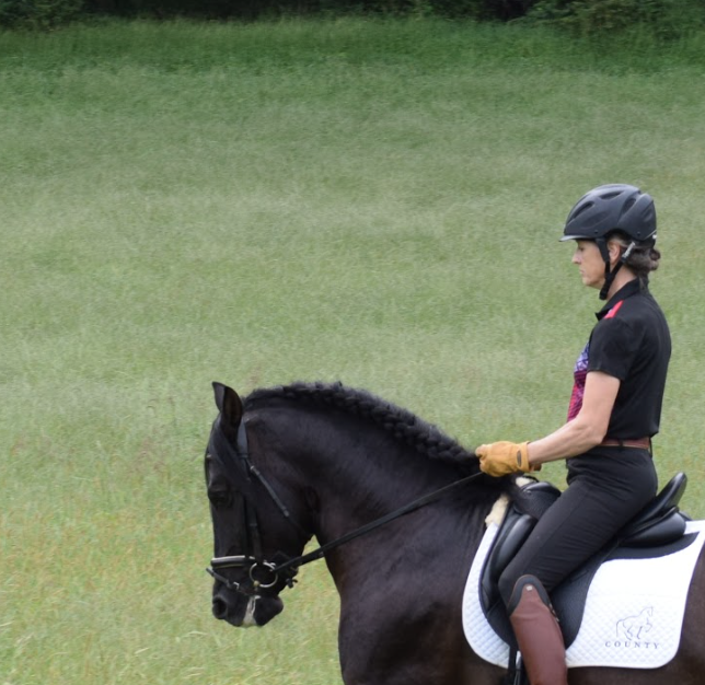 An understanding of how the horse has to use it's body to be able to carry itself for the level of training, and knowing how much power and momentum has to be developed for true collection, shines through all of her riding and teaching.
